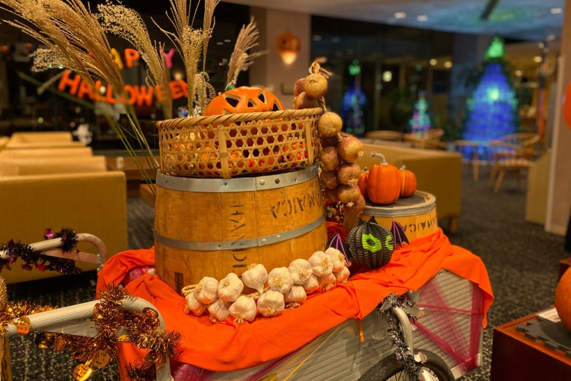 …バルーンやタペストリー、ちょっとした小物まで、ハロウィン一色に染まるゆずり葉が見られるのは今だけ。ぜひフォトスポットとしてご利用ください!